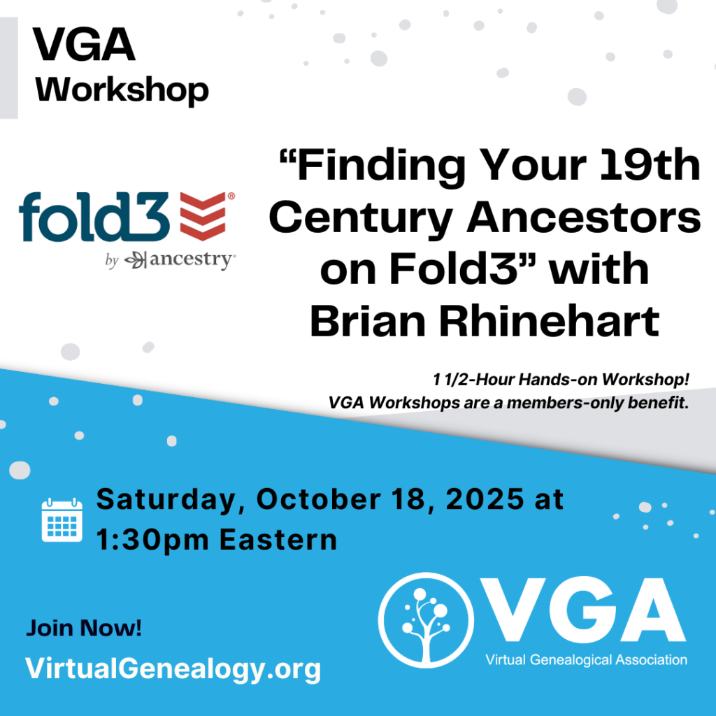 VGA Members can register for this webinar via the Zoom link in the Upcoming Webinars area of the Members Center. Please contact info@virtualgenealogy.org if you have any questions.
